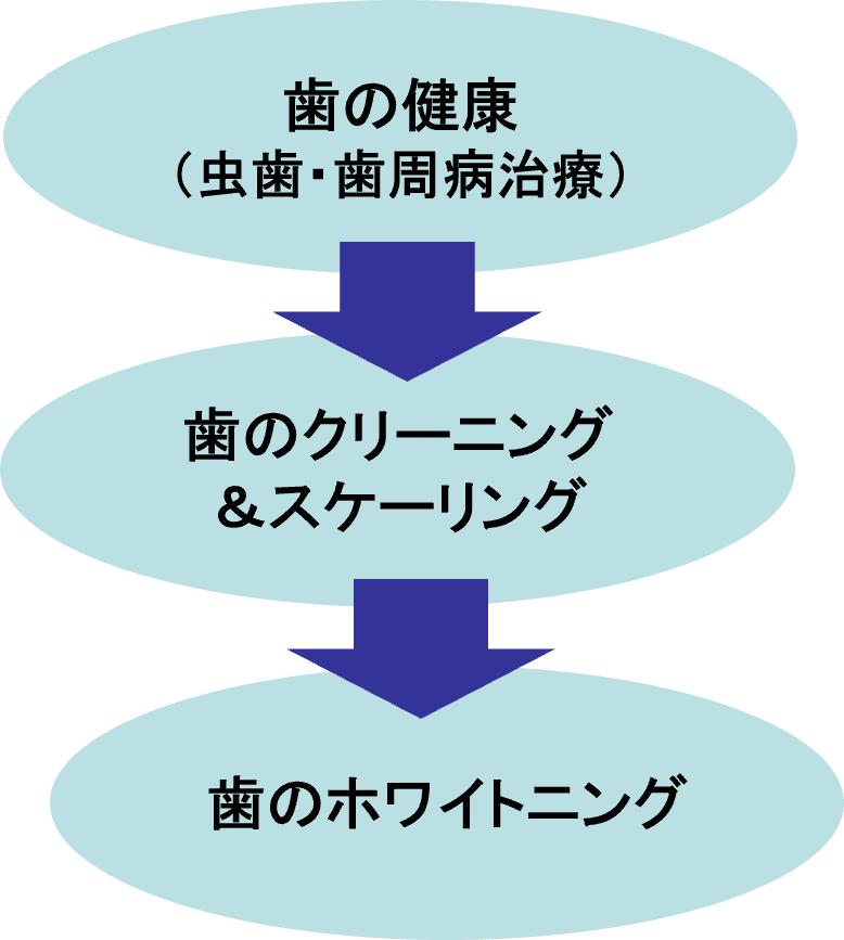 歯のホワイトニングの施術前に歯の健康維持(虫歯・歯周病治療)と歯のクリーニングやスケーリングはホワイトニングの効果継続のためにお勧めします。