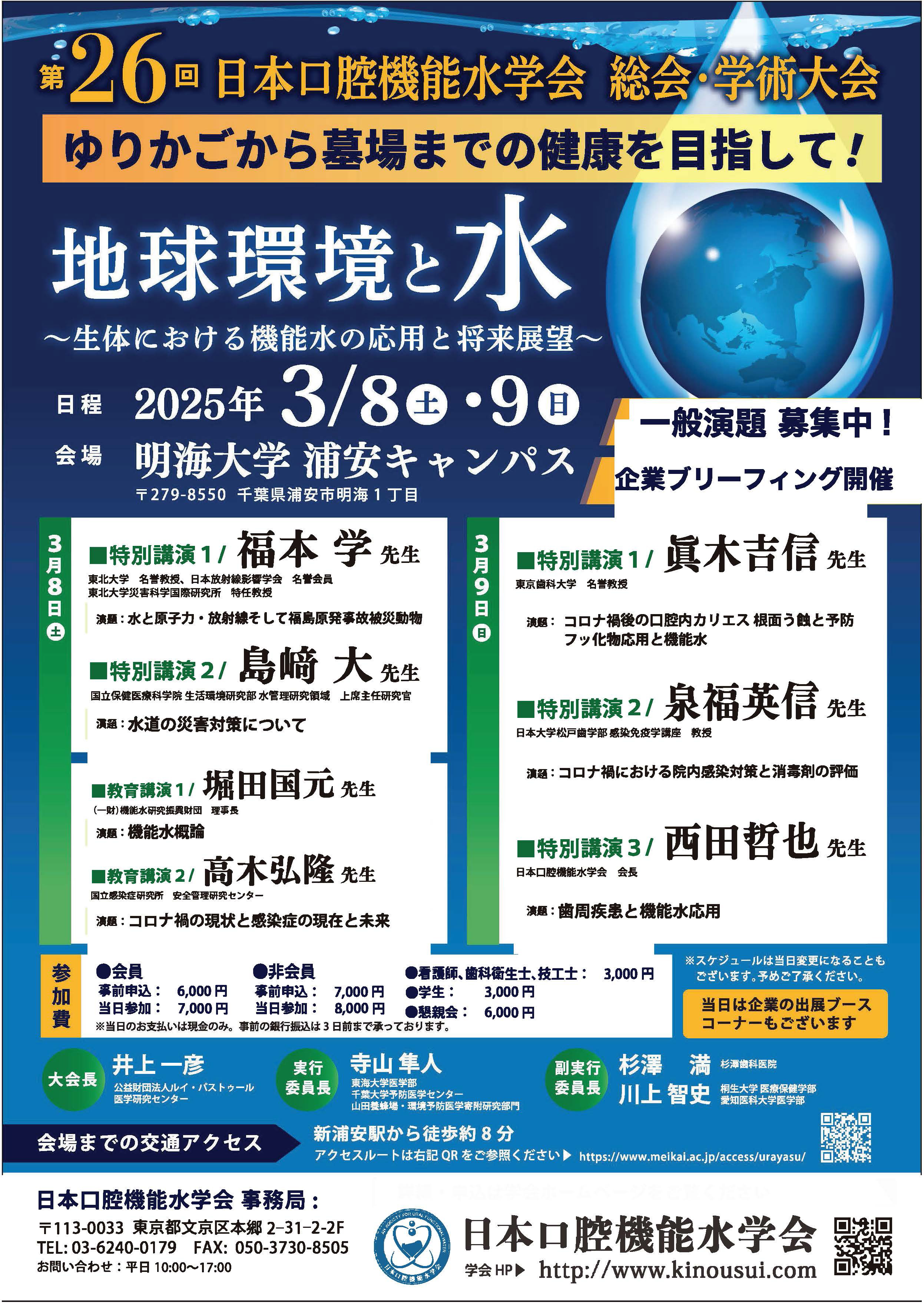 第26回日本口腔機能水学会総会・学術大会を明海大学浦安キャンパスで開催します。